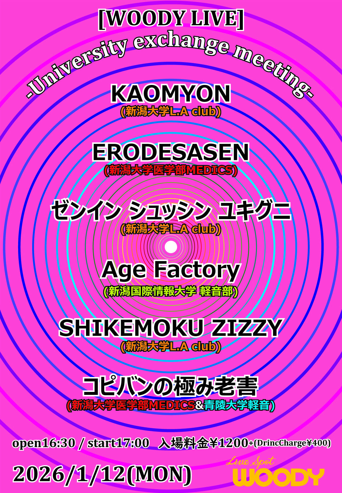 LiveSpotWOODY 1/6 更新 LIVE・スタジオ予定日は随時更新中 webshop=https://niigatawoody.thebase.in/ NEXT EVENT 出演・自主企画募集中! スタジオ・レコーディング受付中です